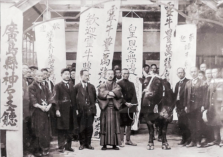 The "Toyokami" and "Toyomi" cows of Kamiishi were honored with an imperial viewing at Fukuyama Castle ruins during His Imperial Highness the Crown Prince's visit to this prefecture in May 1926.On December 2, 1926, Emperor Taisho passed away. On February 7, 1927, during the imperial funeral rites, four Hiroshima cattle were granted the unprecedented honor (the first time for cattle other than Kyoto's Tamba cattle) of being commanded to pull the imperial hearse.