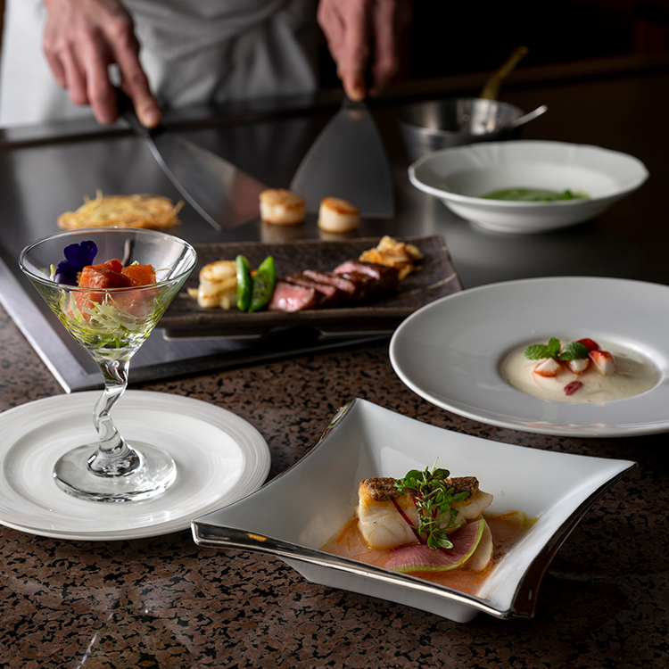 Atago's concept is to create dishes that delight guests visually as they watch them being prepared before them on the teppan grill. The true pleasure lies in savoring piping-hot dishes while observing the transformation of ingredients on the grill and the chef's skillful techniques. We invite you to enjoy the authentic flavors of our ingredients with all five senses—through sight, taste, and more.